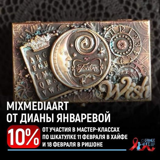 Быстро, красиво, гармонично.Шкатулка в технике MixmediaArt.11 февраля в 12.00 в Хайфе.18 февраля в 12.00 в Ришоне.4 часа чистого творчества, спокойного и радостного потока. Для записи пишите мне.